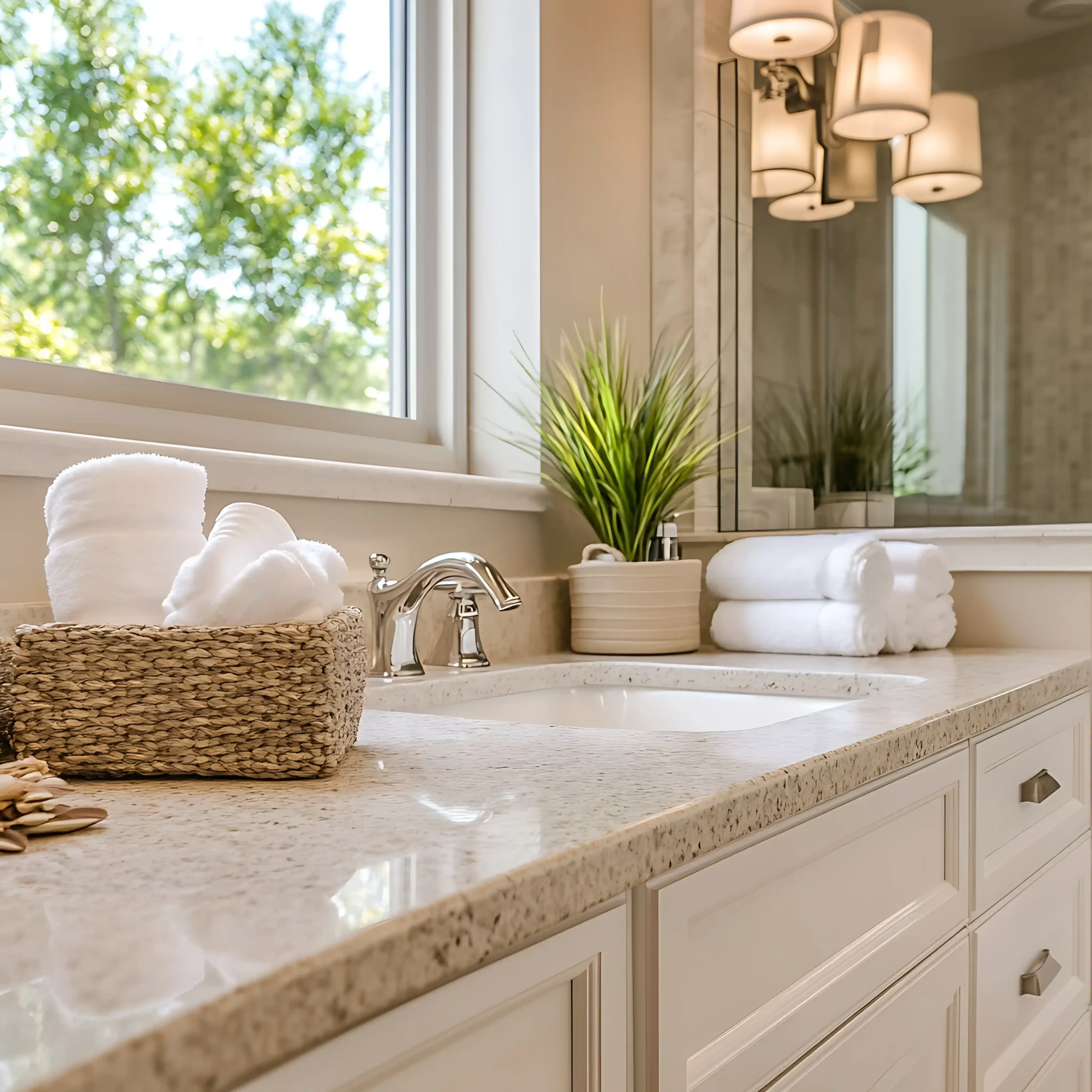 Your space gets an instant makeover when we install a bathroom vanity countertop. It will look refreshed and inviting, no matter what you choose a modern quartz finish or a classic granite design.